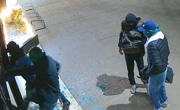 De acordo com as imagens, um veículo Volkswagen Gol chegou ao local com quatro suspeitos encapuzados. Um deles, armado com um machado, quebrou o vidro da porta de entrada e, em seguida, tentou arrombar outro ponto da loja. Apesar da violência, os criminosos não conseguiram acessar o interior do comércio.