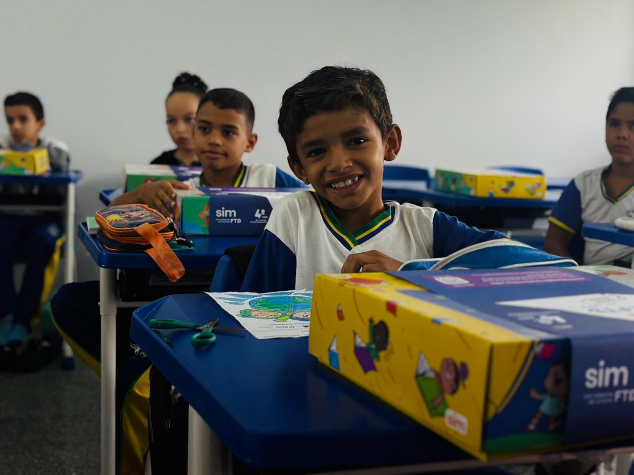 Já neste primeiro dia, os estudantes receberam os kits de material estruturado, compostos pelas apostilas do sistema FTD, que serão utilizados ao longo de todo o ano letivo.