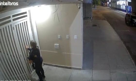 Nas imagens é possível ouvir os pedidos de socorro da vítima enquanto os policiais ordenam que o agressor abra o portão e largue a arma